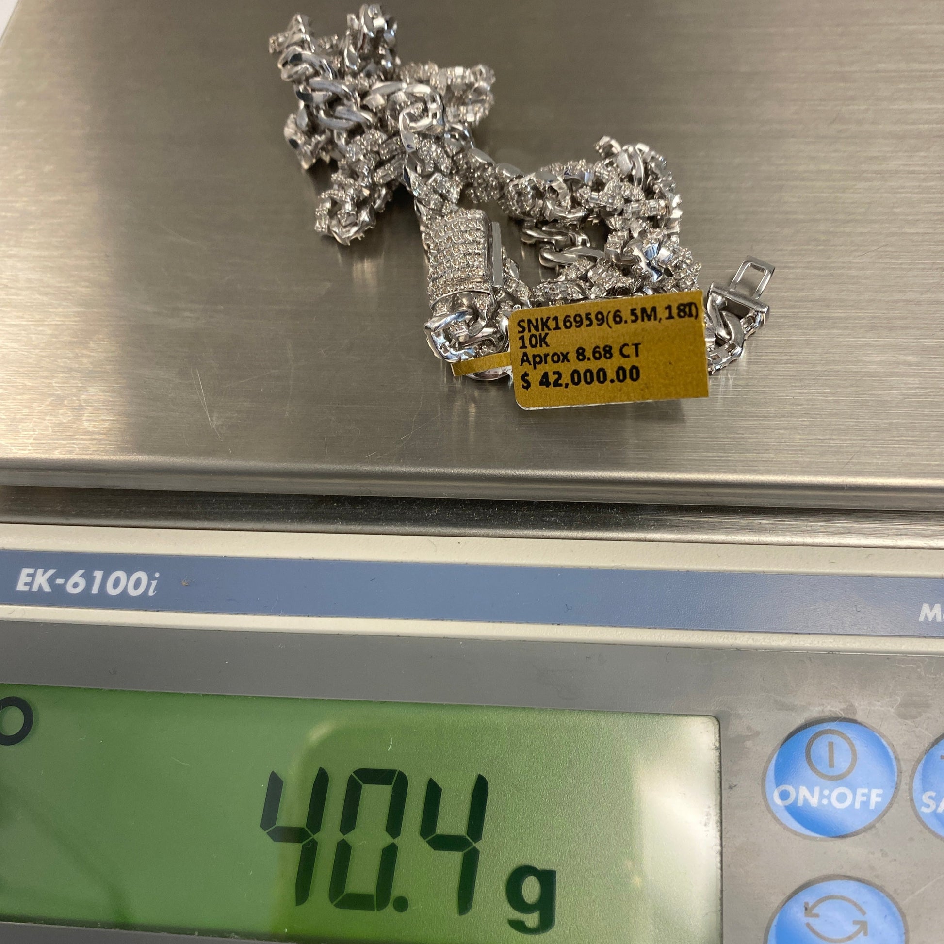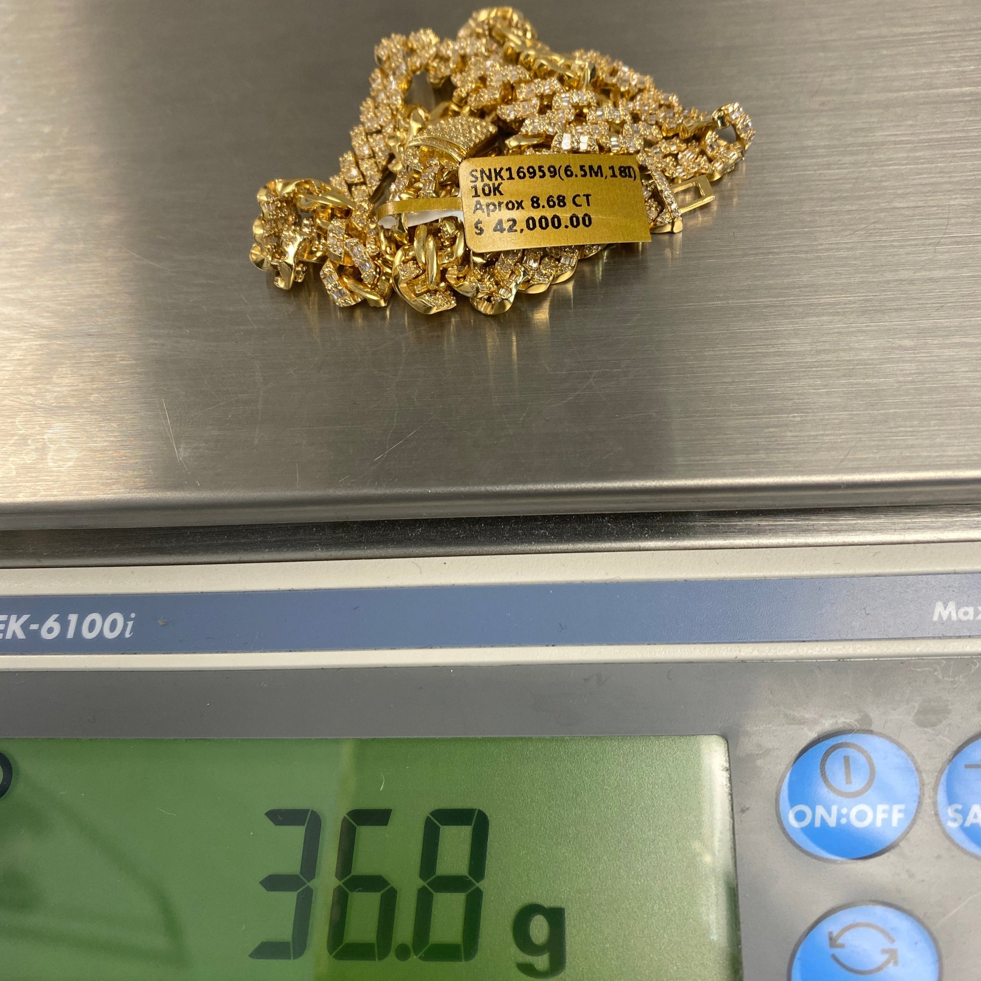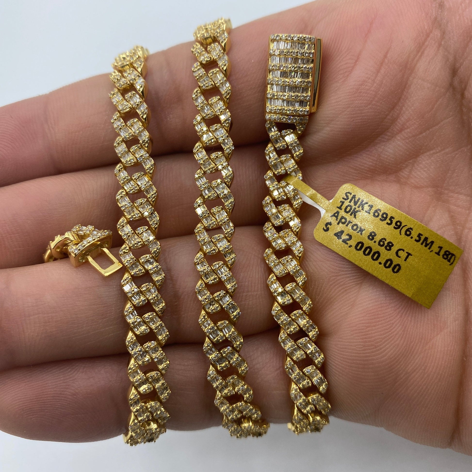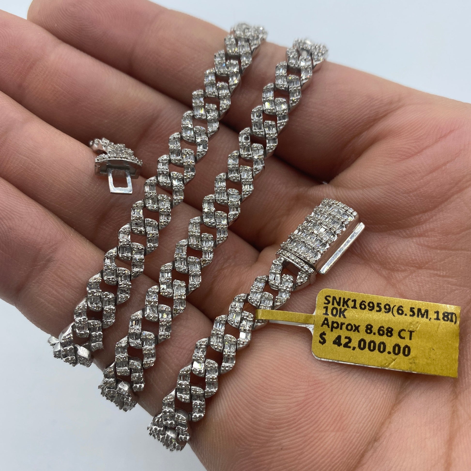 10K 6.5MM Cuban Link Diamond Baguette Chain 18"