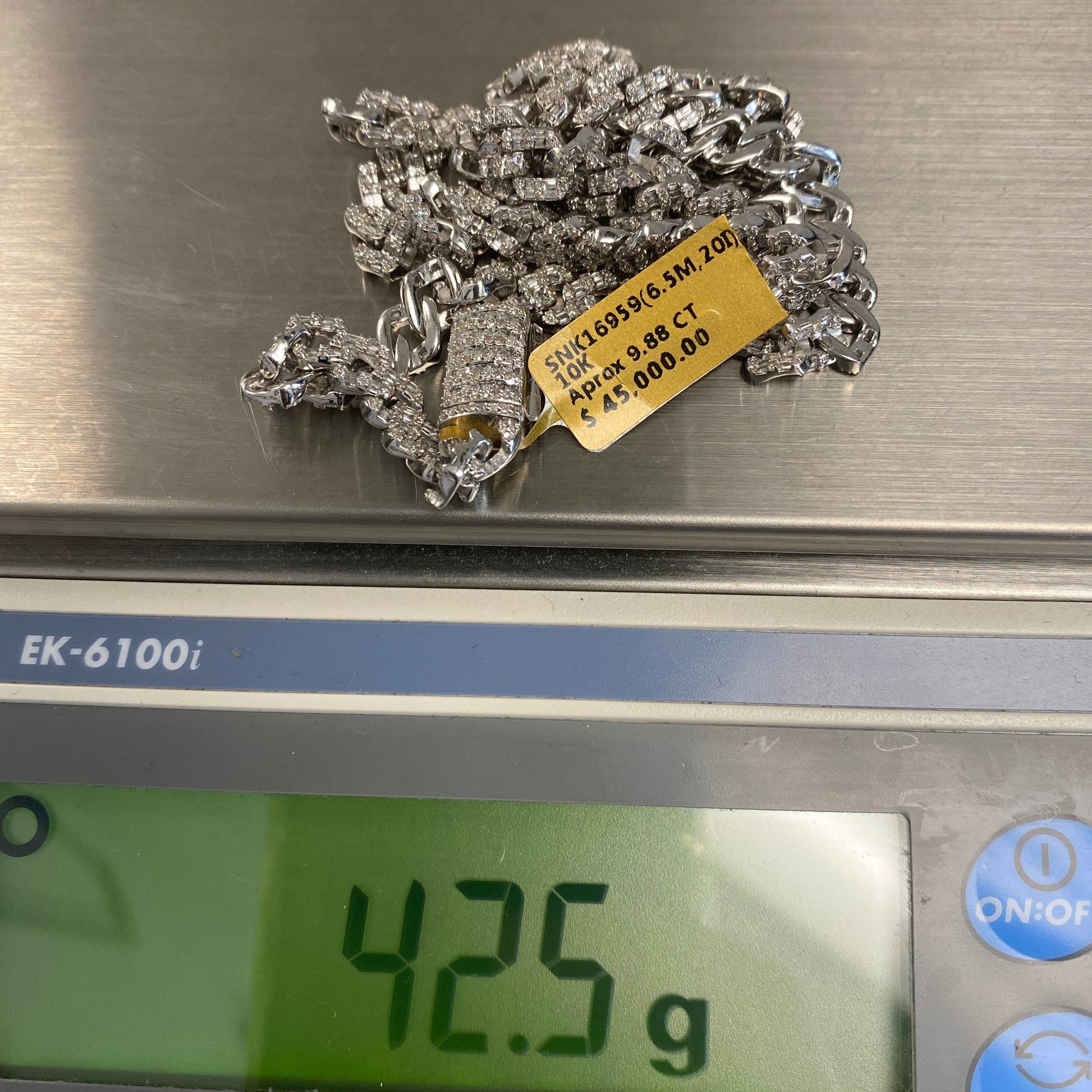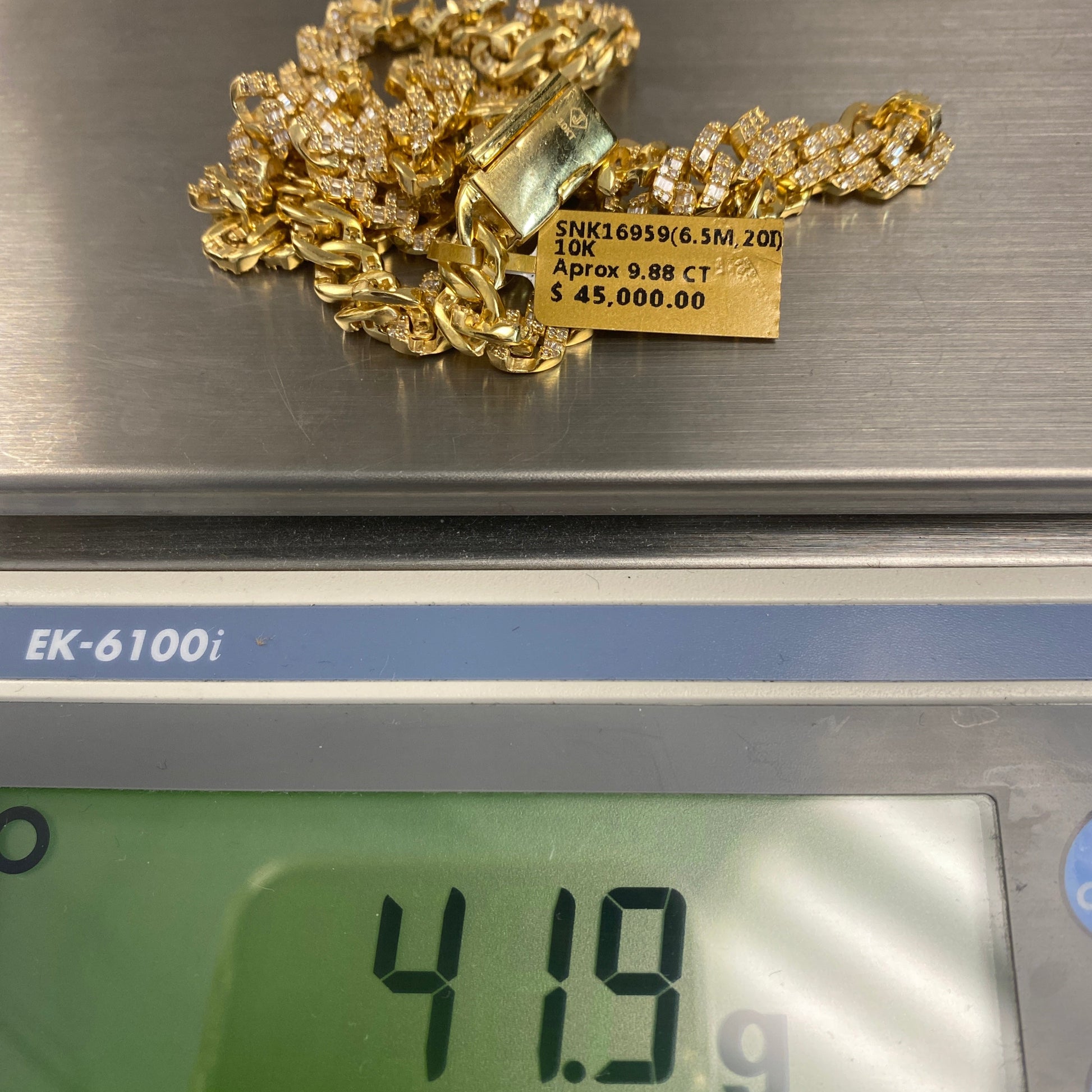 10K 6.5MM Cuban Link Diamond Baguette Chain 20"
