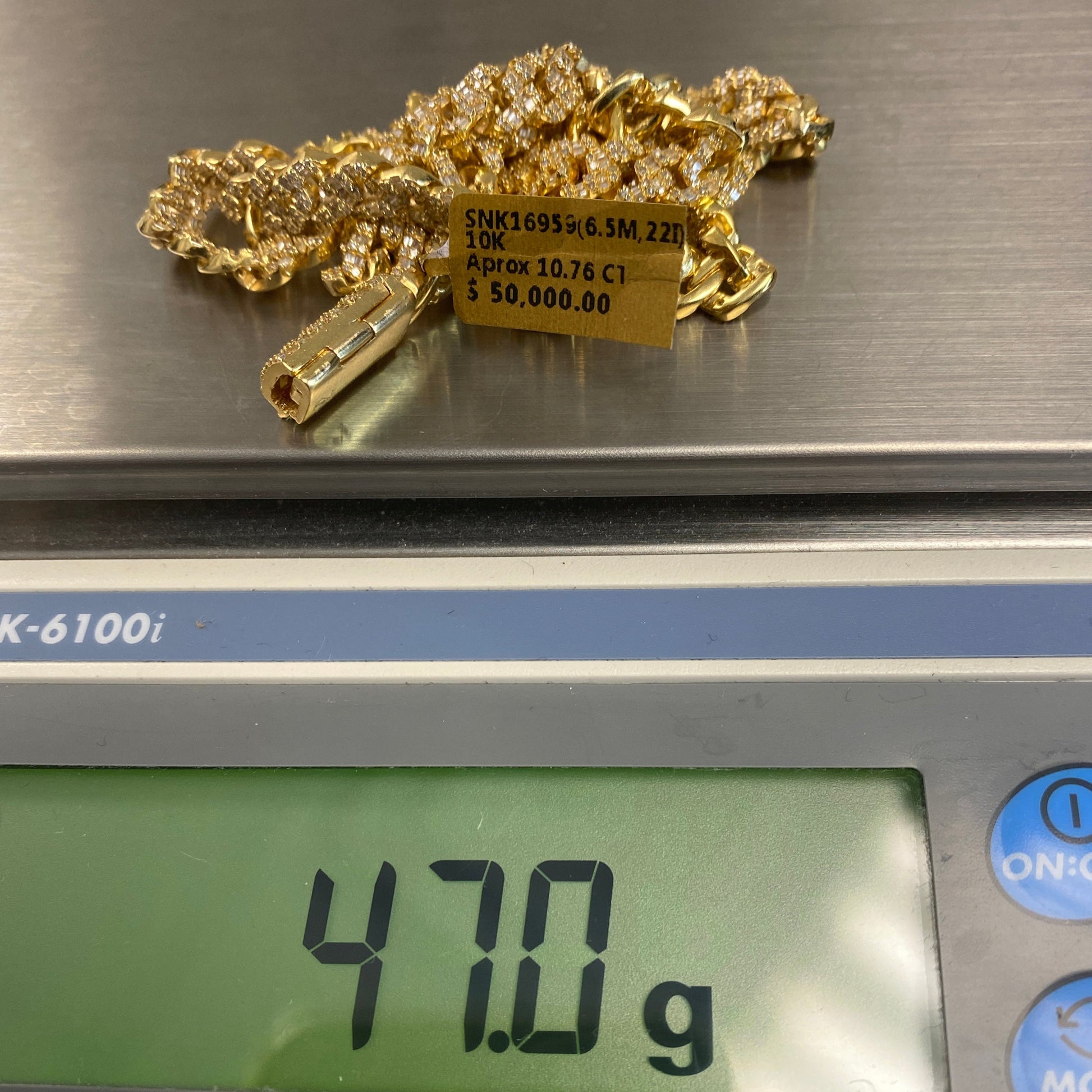 10K 6.5MM Cuban Link Diamond Baguette Chain 22"