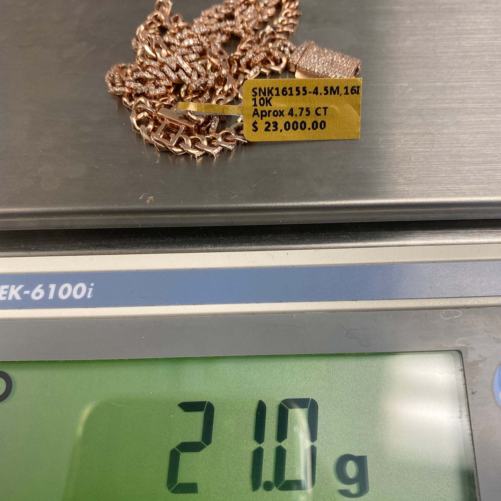 10K 4.5MM Cuban Link Diamond Chain 16"