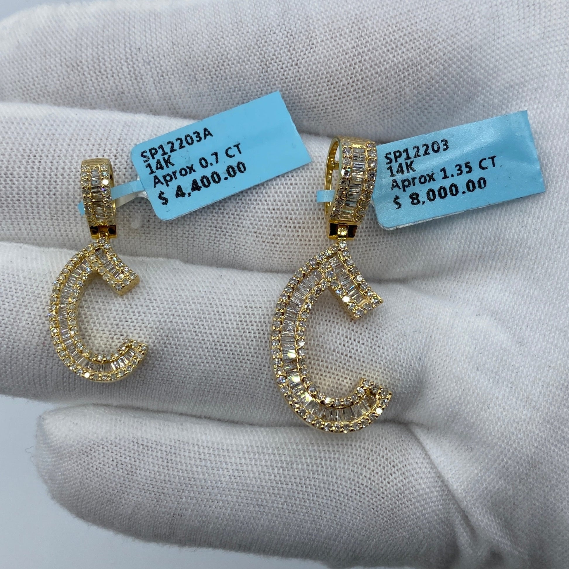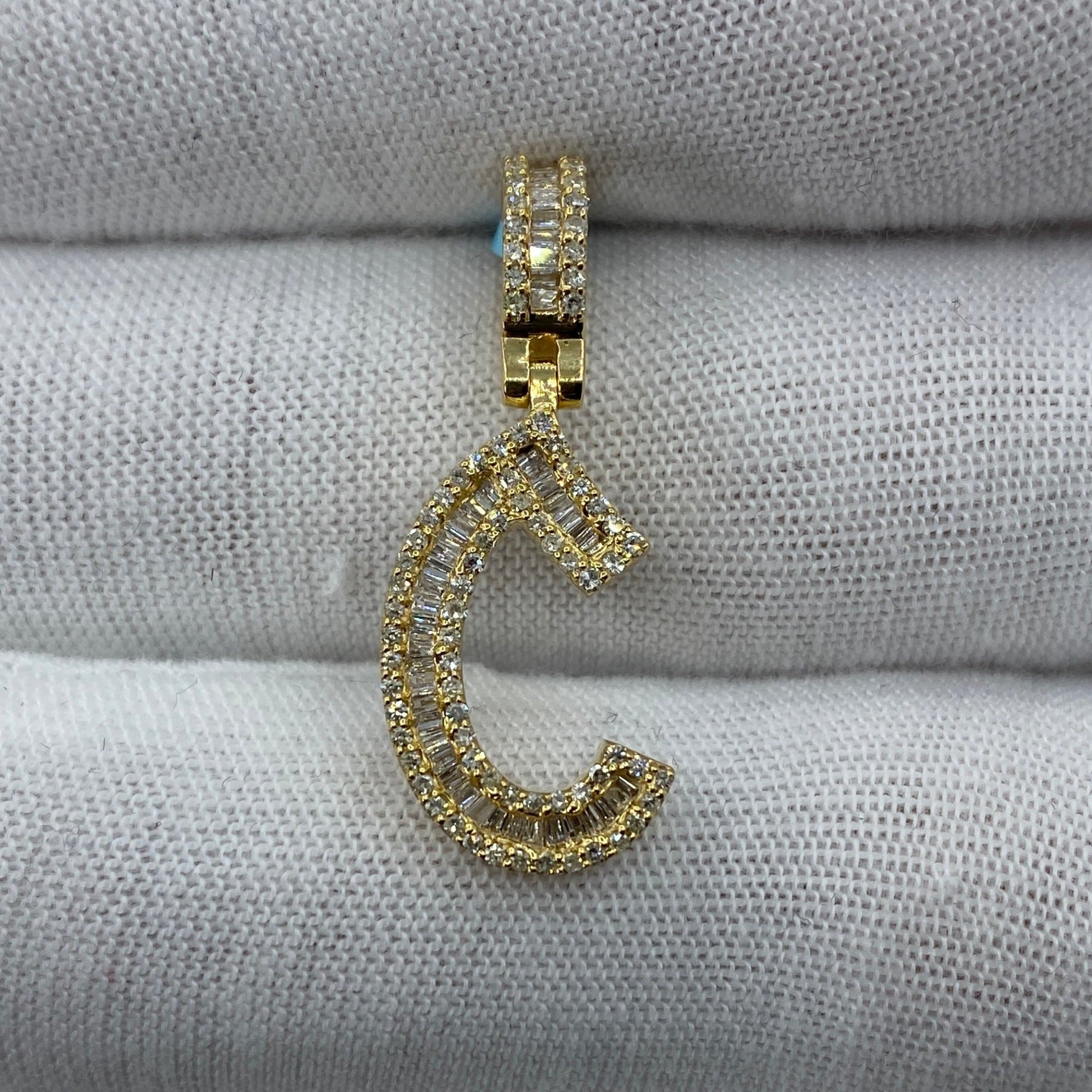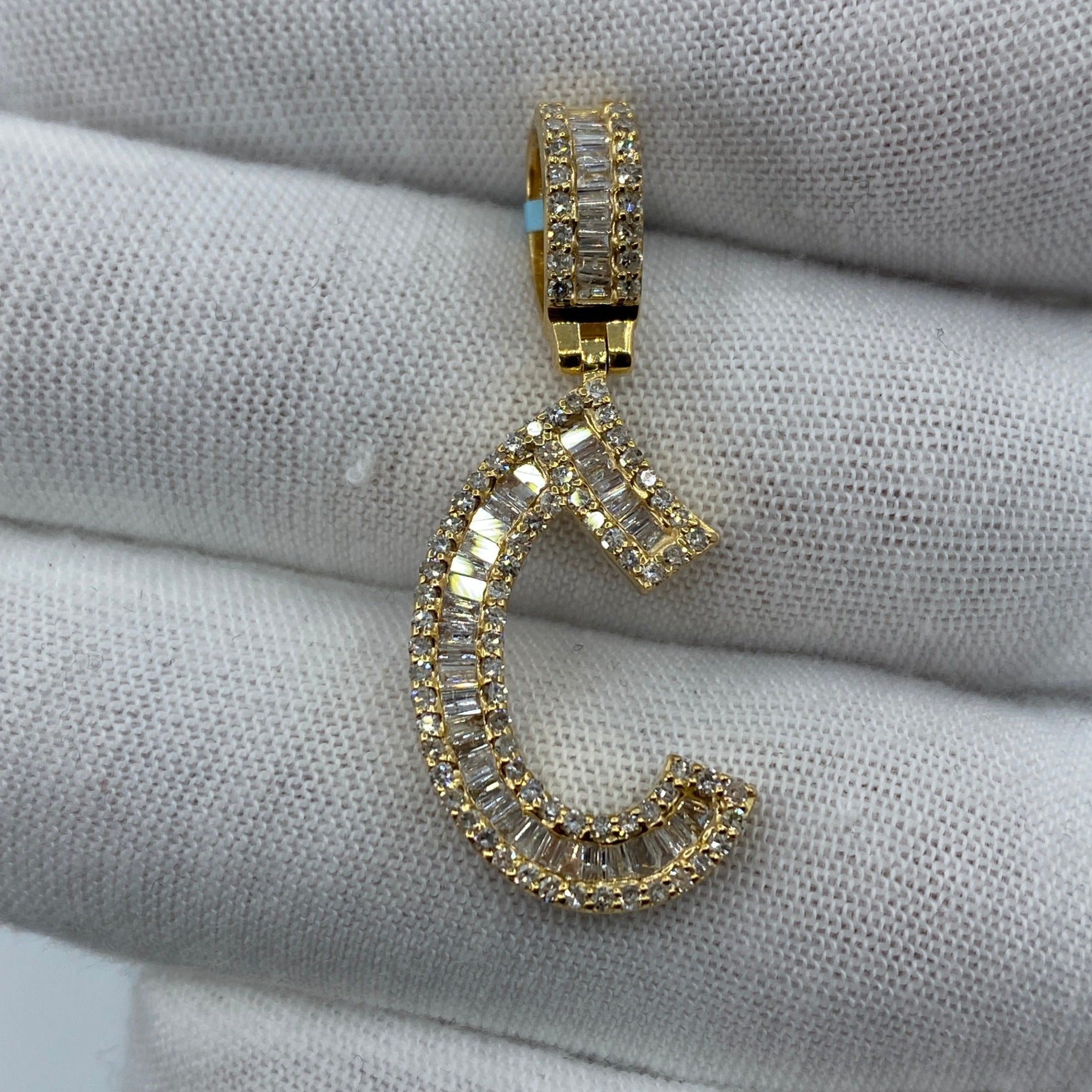 14K C Diamond Baguette Initial Pendant
