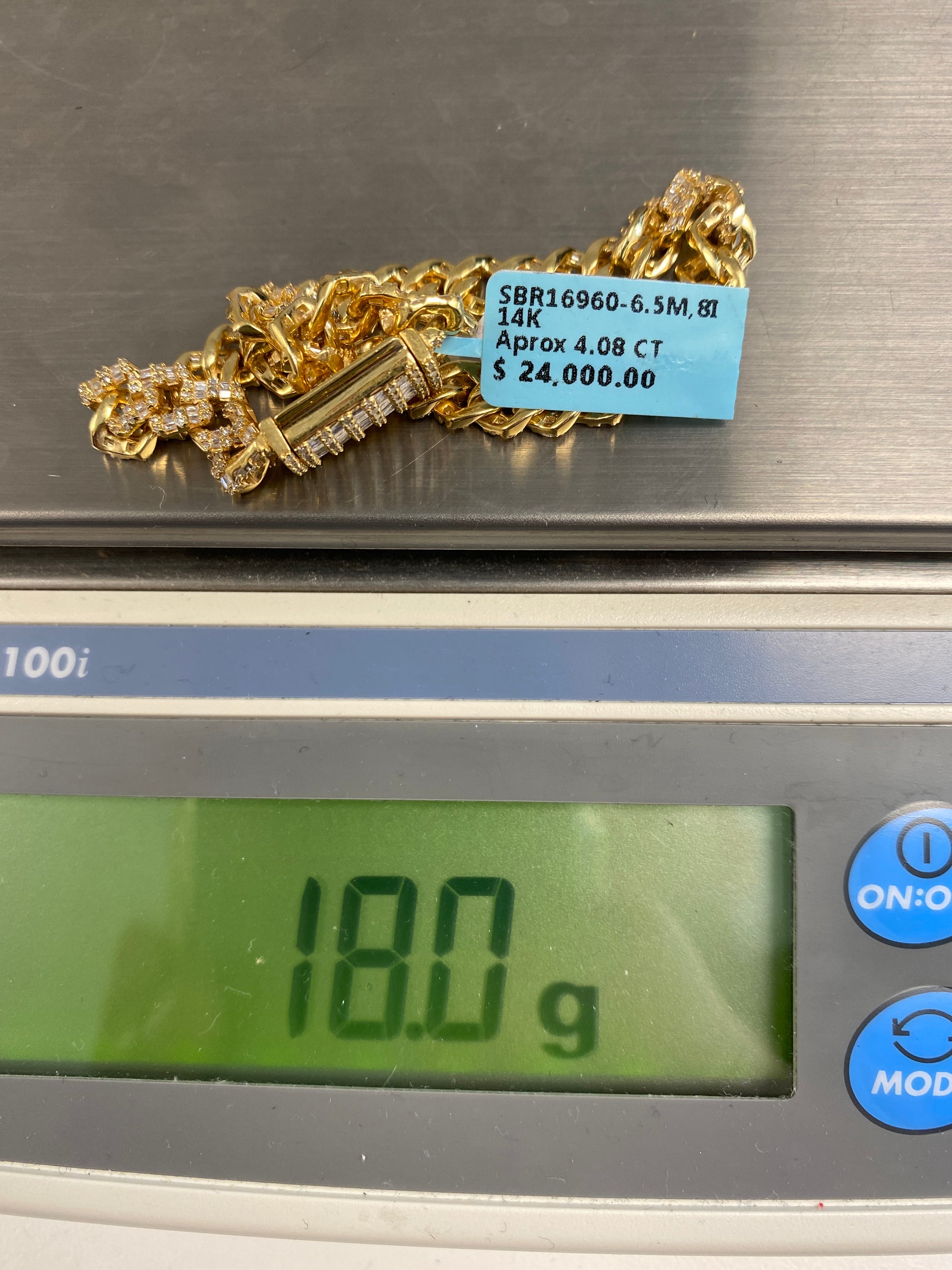 14K Cuban Baguette Bracelet 6.5mm, 8in
